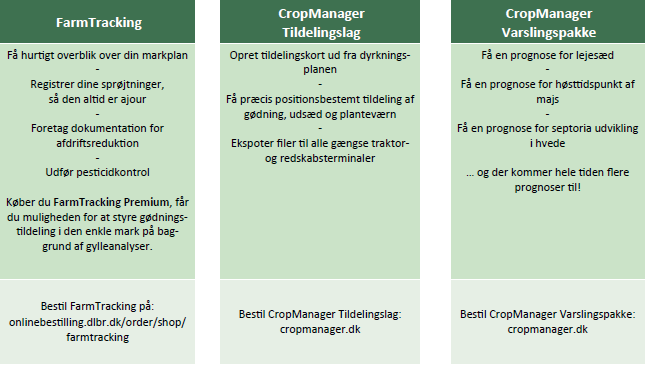 OBS! Du skal have CropManager + Mark Online Basic for at kunne bruge Tildelingslag og Varslingspakker i CropManager.