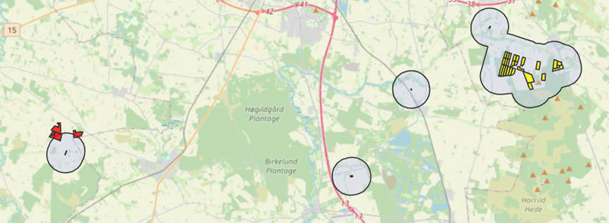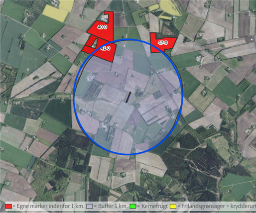 Pas på nabomarker med frugt og grønt som er markeret med blå, når du sprøjter med prosulfocarb. På landmand.dk kan du se om der er nogle i nærheden af dine marker.
