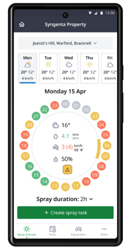 Tjek vejrudsigten, inden du sprøjter med prosulfocarb, og sørg for at anvende korrekt sprøjteteknik. Brug appen Spray Assist, fordi den giver dig vejledning om de bedste sprøjtetidspunkter i løbet af de kommende 7 dage, med detaljer om specifikke vejrrisici.